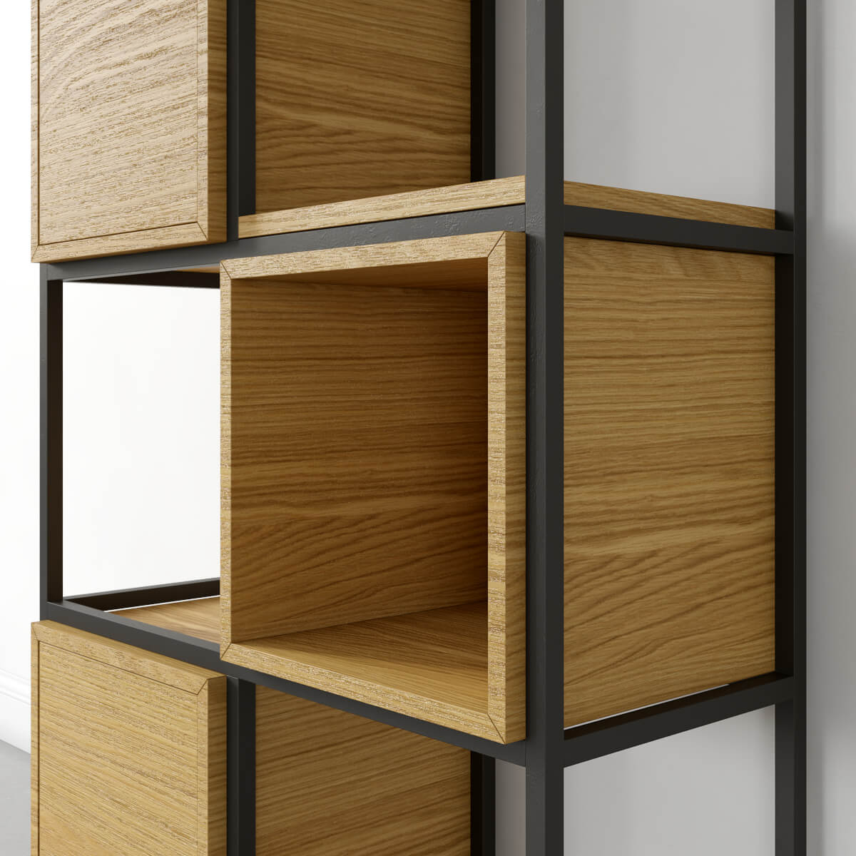 W sklepie internetowym I LOFT U z meblami industrialnymi przygotowaliśmy wiele modeli do wyboru, zarówno gotowych regałów, jak i do samodzielnego skompletowania. Czarny metalowy stelaż regału jest doskonałym szkieletem na fornirowe moduły w kolorze dąb naturalny. Sprawdź również nasze inne meble loftowe!